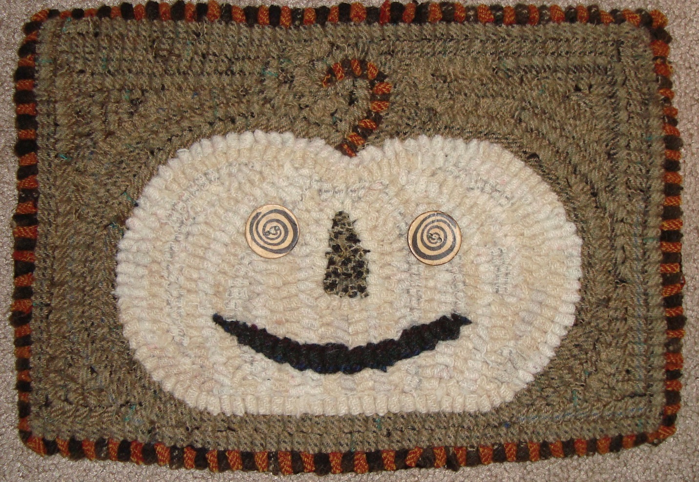 A photo dated 2012 of a mat I hooked using Lori's design which was in her booklet "October Folk".