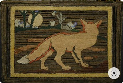 Barb Carroll made a similar comment in class. Barb's was more of a color contrast which she called 'poison' as a random out-of-place hooked piece of wool. After all, they used what they had back in the day. An example of Barb's teaching is in this Westmoreland Ponies pattern designed by her and I hooked it in a class with Barb 2012. Click on the photo below and look closely. You can see the odd yellow green strips, random plaids and even a lighter color in the background. All of which provides interest and makes the eye move around the rug. AND, makes it more fun for the hooker.