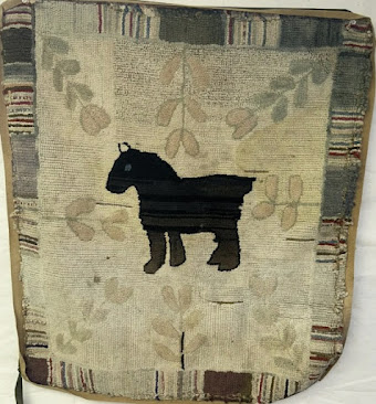 Vacated the dog and started hooking the swag, border and one row around the dog's face to see how it would look.