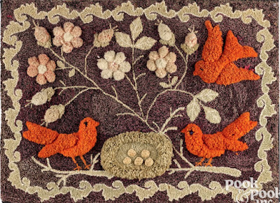 The rug below appears to be floral combined in scrolls. No date provided but measures 19 x 34.5
